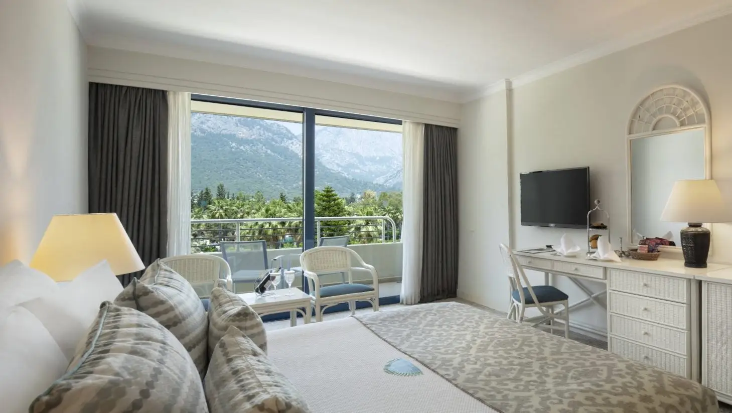 Standart Dağ Manzaralı Oda, 26m² genişliğinde olup, huzurlu bir konaklama deneyimi sunar. Muhteşem dağ manzarasına sahip odalarımızda, 1 çift kişilik veya 2 tek kişilik yatak seçeneği bulunmaktadır. Maksimum 3 yetişkin konaklama kapasitesiyle konforlu bir konaklama imkanı sunar.
