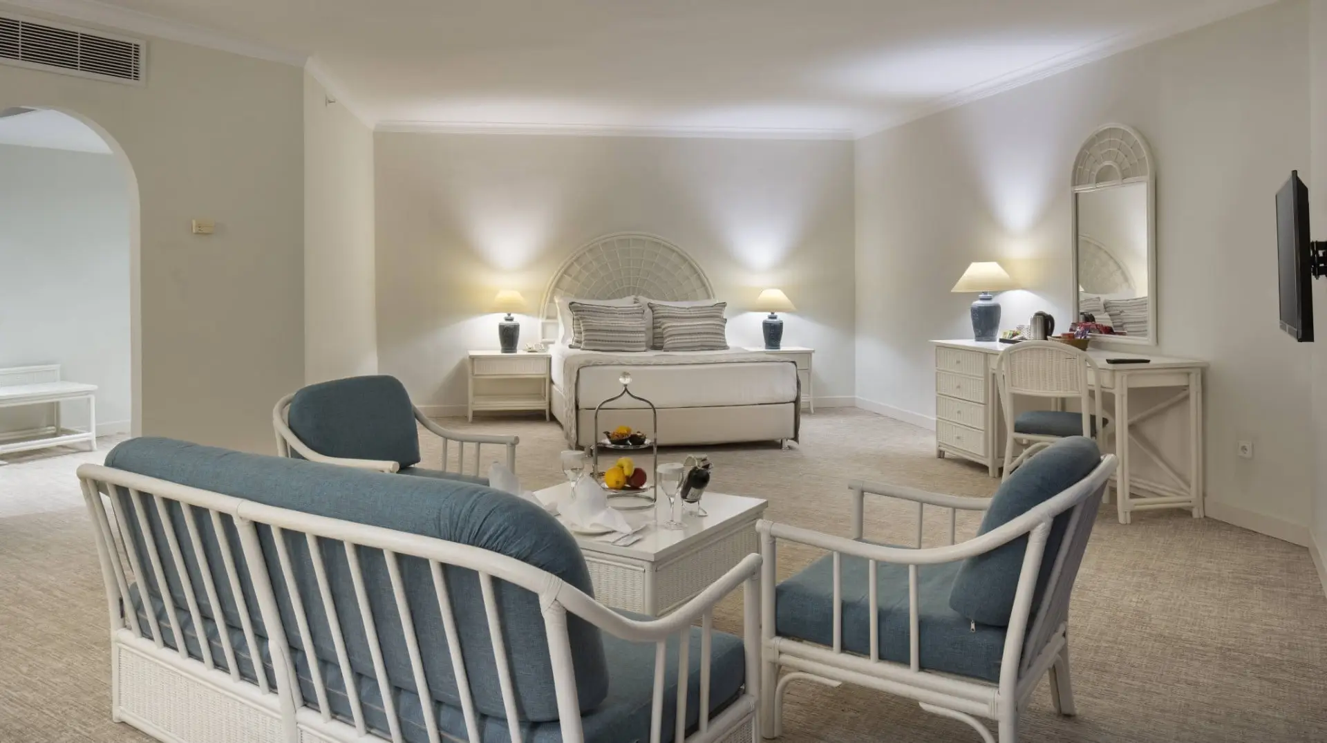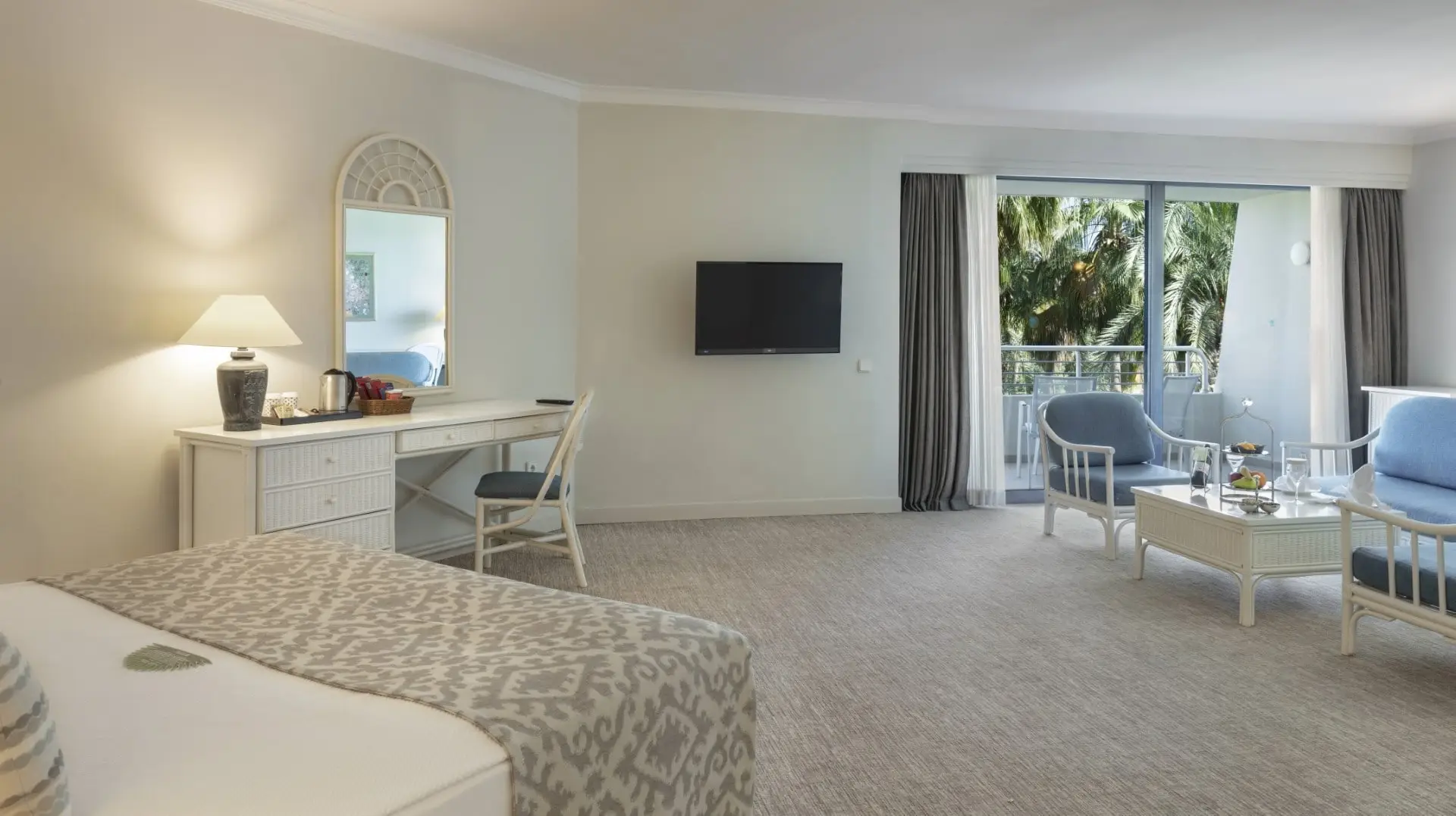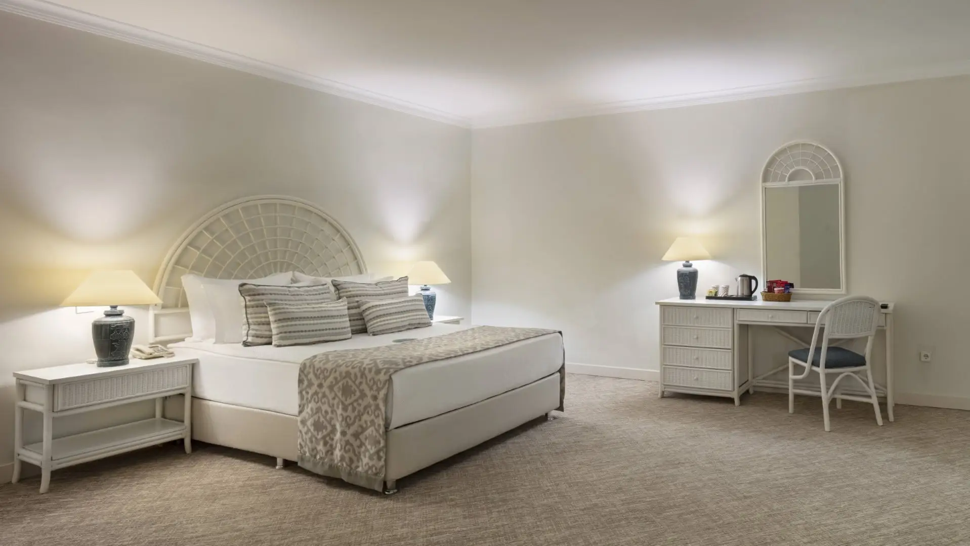 Deniz veya Dağ Manzaralı Geniş Oda, 56m² genişliğiyle ferah bir konaklama deneyimi sunar. Muhteşem manzaralar eşliğinde keyifli bir tatil imkanı sağlayan odalarımızda, 1 çift kişilik yatak ve 2 ilave tek kişilik yatak bulunmaktadır. Maksimum 4 yetişkin kapasitesiyle konfor ve rahatlığı bir arada sunar.